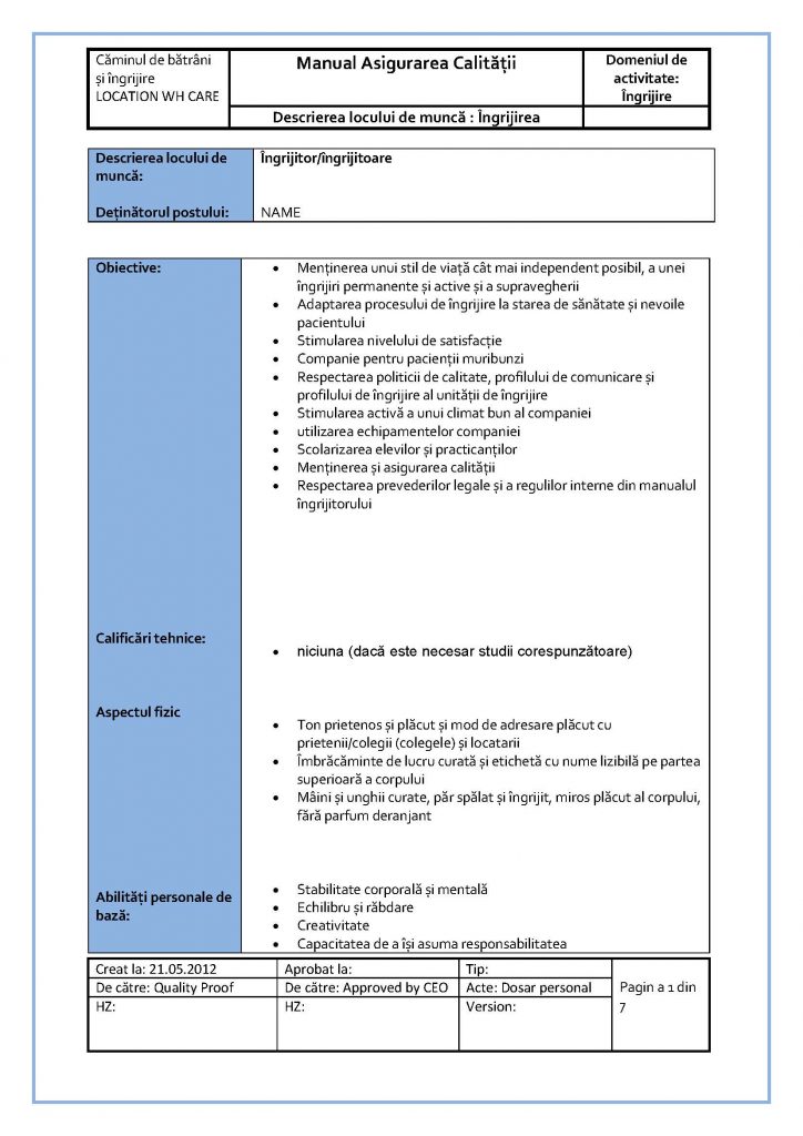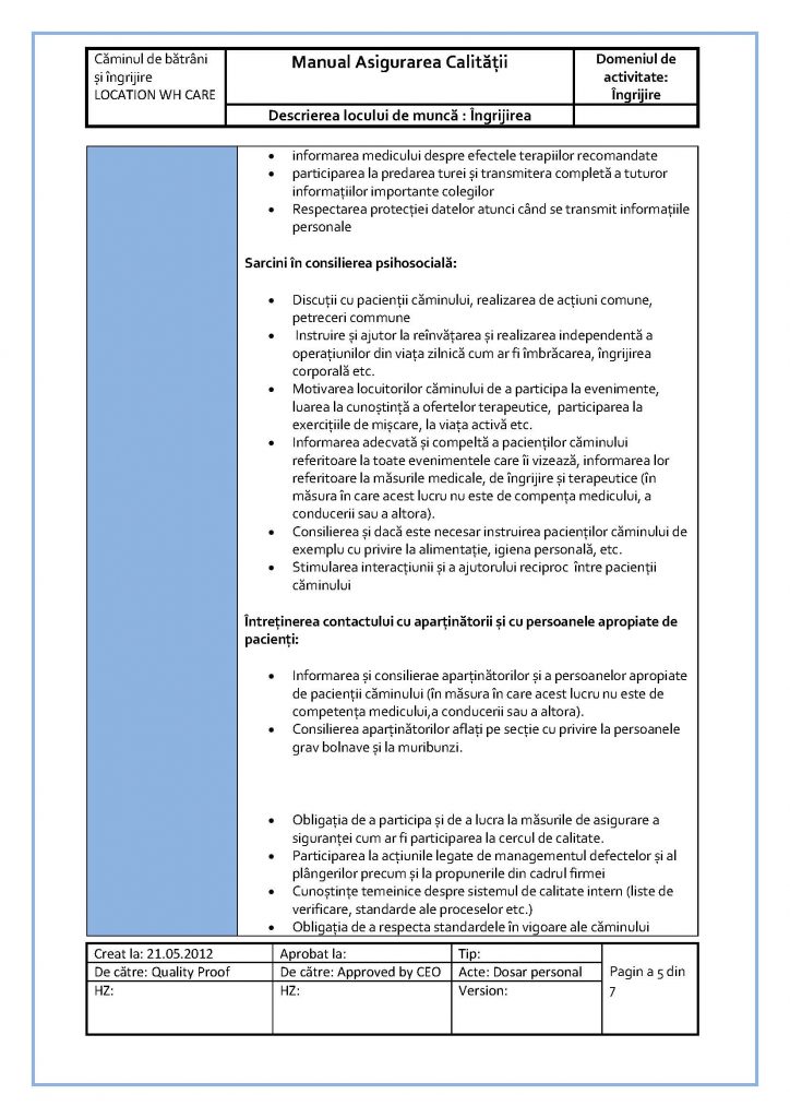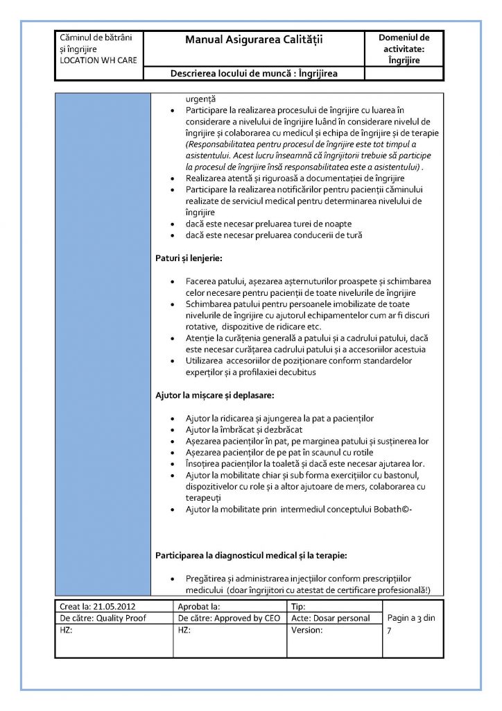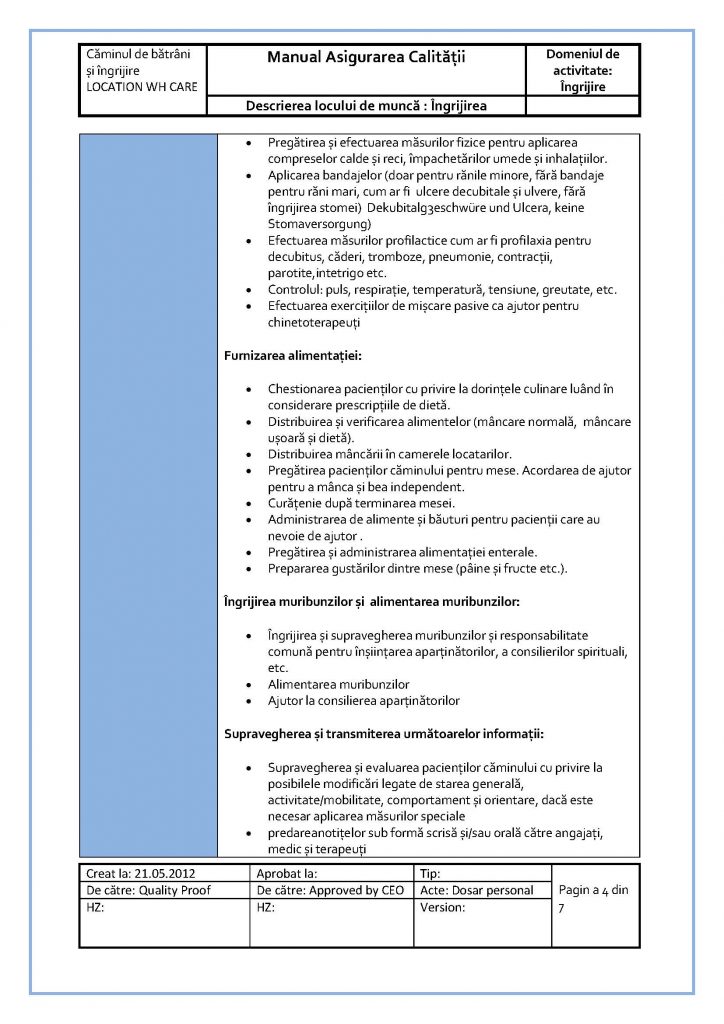 The above description is a common description about the doing of a nurse. In addition you receive the contract that refers to this description. Regarding to the value of “Responsibility” of our company, it´s quite important to know if there is something that you couldn´t make or do during your job. If we know your strength, it will be more easy for us to concentrate on this instead of looking for your weakness. Do you have more questions? In Romania you don´t lern to work with older people, so that we have to teach you following a process and concept to integrate you perfect in our team. For this we have specialized nurses with a special education to educate you during this training. Please write us if you have any questions!